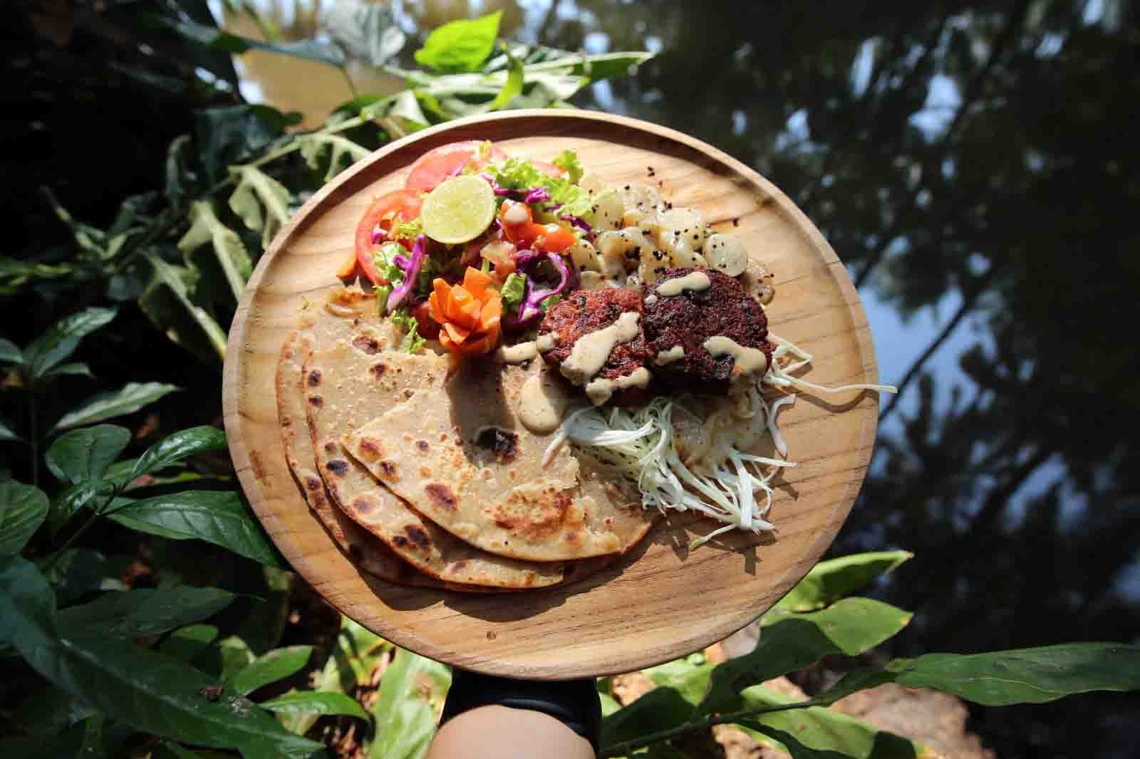 You’ll be well-fed with freshly prepared vegetarian meals blending Indian flavours and Western favourites. Every dish is made with care using fresh, local ingredients and the highest hygiene standards.